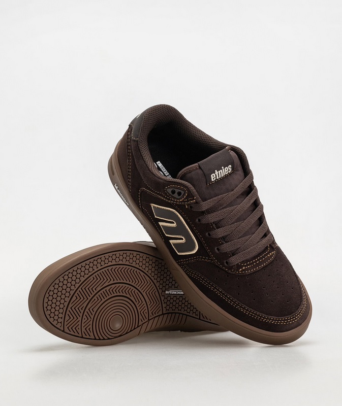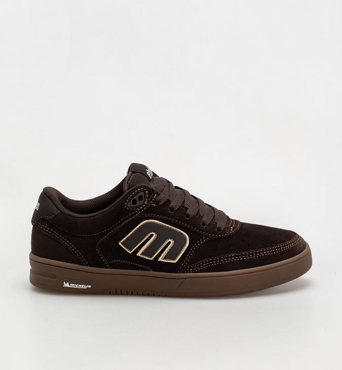 Etnies SERIN MICHELIN, BROWN/GUM Etnies Serin Michelin Shoes. STI Performance Level 1 insole. Flo2 system provides airflow around the foot. Reinforced Force Shield upper. Elastic straps on tongue for a better fit. 400NBS rubber for grip and board feel. Upper made of suede and leatheróry.