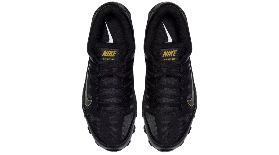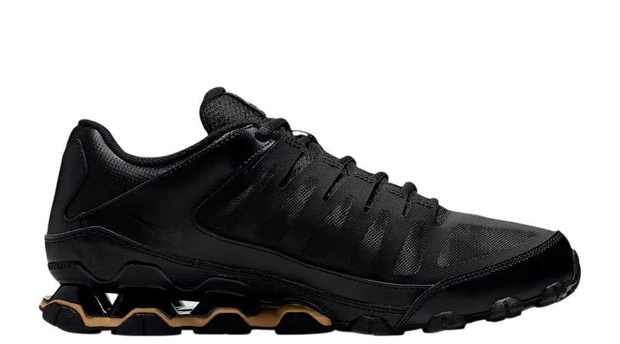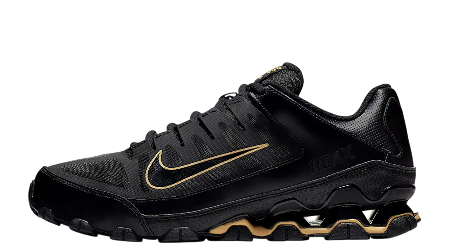 The Nike Reax 8 TR Mesh “Black Metallic Gold” delivers performance you can count on, wrapped in a sleek, athletic look. It’s a training shoe that means business—built to support your movement with lightweight comfort, responsive cushioning, and durable traction. And with that metallic gold detailing against the black upper, it doesn’t go unnoticed either. The breathable mesh keeps airflow consistent during tough sessions, while synthetic overlays reinforce high-stress areas without adding bulk. A metallic gold Swoosh stands out across the sides, with matching accents on the tongue and lace loops adding subtle contrast. It’s bold but not overdone—just enough detail to break up the all-black base without losing its edge. Cushioning comes via Nike’s Reax system in the heel. It softens landings while giving you a responsive feel through lifts, jumps, and quick changes in direction. Flex grooves on the forefoot keep your stride feeling natural, while solid rubber pods on the outsole deliver grip across gym floors and pavements alike. The dynamic lacing system pulls everything together, hugging the midfoot for a secure fit. Whether you’re going for reps, on your feet all day, or just need a go-to pair for varied movement, the Reax 8 TR Mesh “Black Metallic Gold” holds up—and looks good doing it.