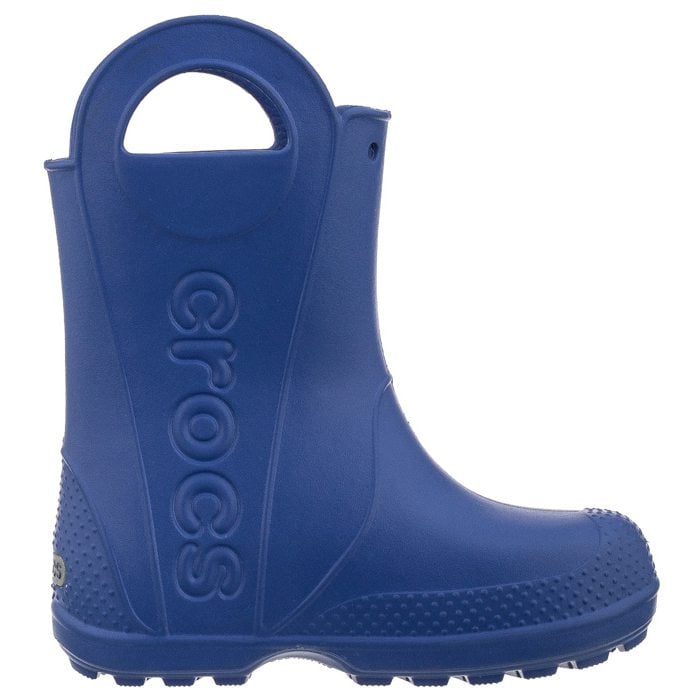 Waterproof rain boot. Now kids can enjoy classic Crocs comfort — even on the rainiest days. This kids’ rain boot is available in bright colors with a waterproof build that keeps puddle-jumping feet cozy and dry. Plus, oversized handles make them easy for kids to put on and take off.