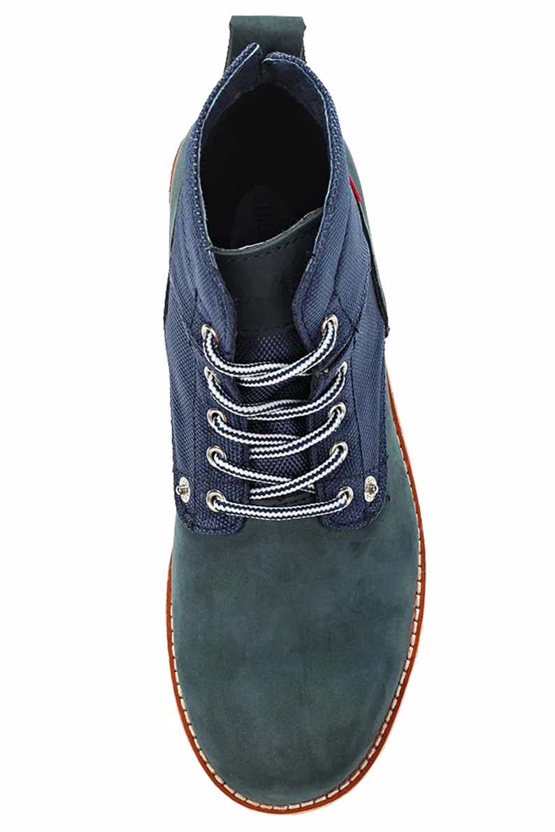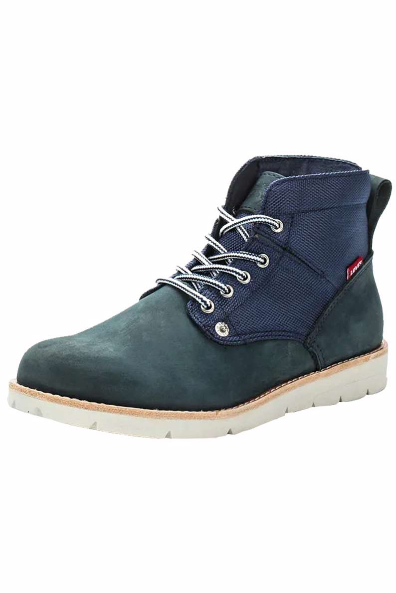 Levi’s LADY JAX These blue Levi’s Lady Jax women’s lace-up boots are made of high-quality nubuck leather and durable fabric. The insole is textile. The sole is flat and has no heel. The signature logo is embossed on the tongue. Suitable for fall/spring, these boots are a great everyday option.