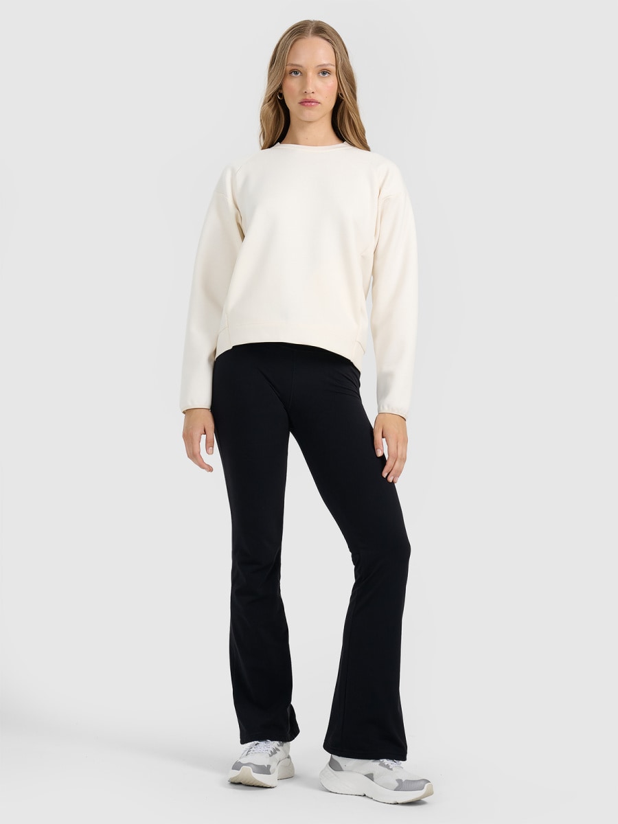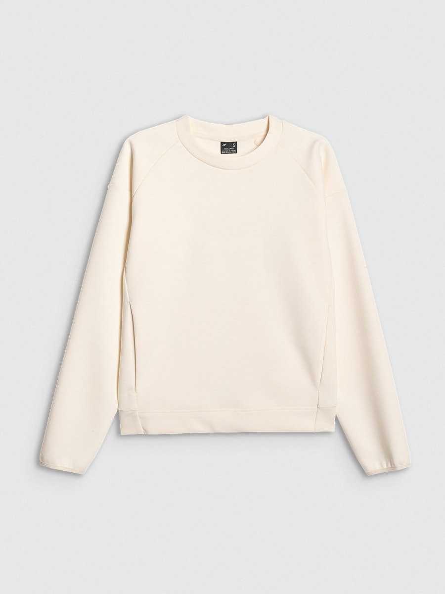 Sieviešu džemperis no interlock materiāla – ikdienas komfortam. Mīksts un gluds sintētisks trikotāžas audums nodrošina valkāšanas komfortu. Divas sānu kabatas.