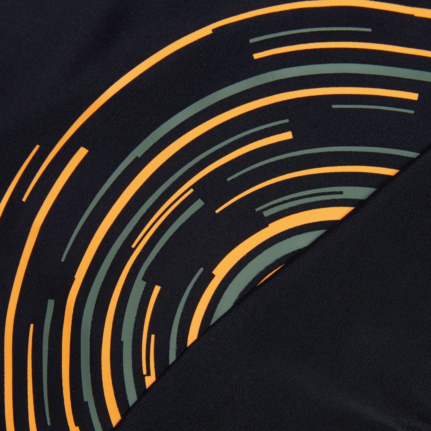 Jūtieties pārliecināti un moderni, valkājot sportisko melno Muscleback peldkostīmu ar dinamisku, viļņotu grafiku spilgti dzeltenā un ceriņu krāsā. Jauno peldētāju iecienītais Muscleback modelis ir aprīkots ar biezām siksnām, kas atbrīvo lāpstiņas, nodrošinot pilnu kustību diapazonu nodarbību un treniņu laikā. EnduraFlex audums, kas ir ideāli piemērots regulārām nodarbībām baseinā, piedāvā augstāku izturību pret hloru nekā standarta peldkostīmu audumi un, pateicoties CREORA® HighClo™, ilgāk pieguļ kā jauns. Turklāt EnduraFlex auduma neilona dzijas ir izgatavotas no 100% pirmslietošanas atkritumiem, piemēram, rūpnīcu auduma atkritumiem.