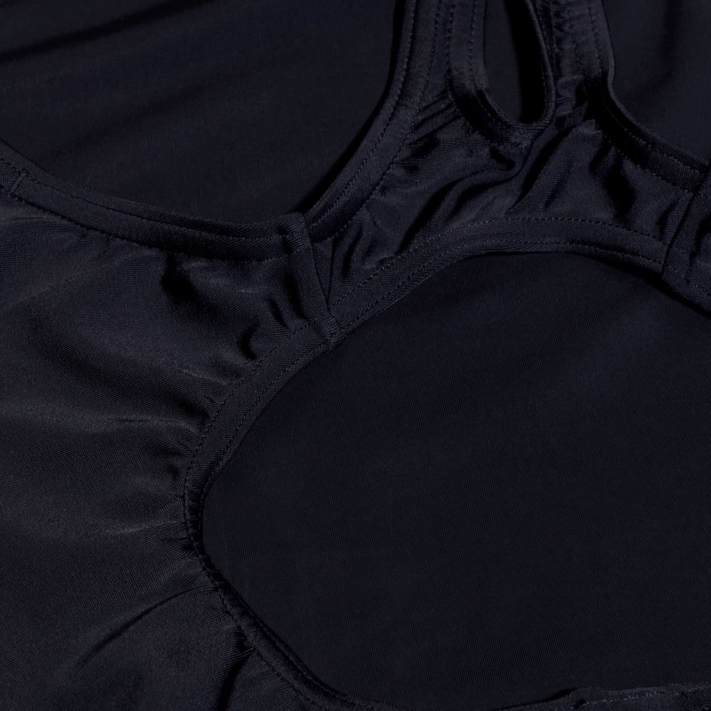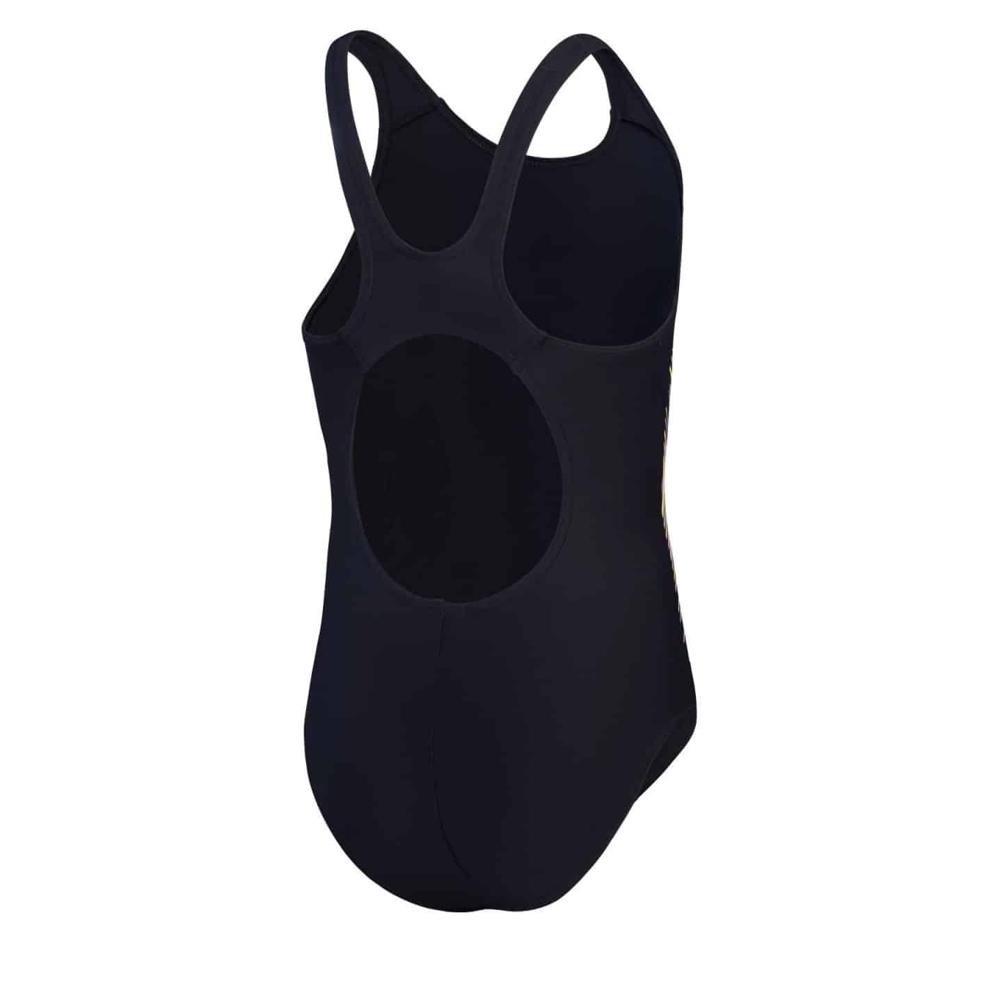 Jūtieties pārliecināti un moderni, valkājot sportisko melno Muscleback peldkostīmu ar dinamisku, viļņotu grafiku spilgti dzeltenā un ceriņu krāsā. Jauno peldētāju iecienītais Muscleback modelis ir aprīkots ar biezām siksnām, kas atbrīvo lāpstiņas, nodrošinot pilnu kustību diapazonu nodarbību un treniņu laikā. EnduraFlex audums, kas ir ideāli piemērots regulārām nodarbībām baseinā, piedāvā augstāku izturību pret hloru nekā standarta peldkostīmu audumi un, pateicoties CREORA® HighClo™, ilgāk pieguļ kā jauns. Turklāt EnduraFlex auduma neilona dzijas ir izgatavotas no 100% pirmslietošanas atkritumiem, piemēram, rūpnīcu auduma atkritumiem.