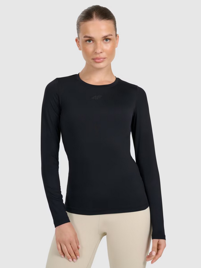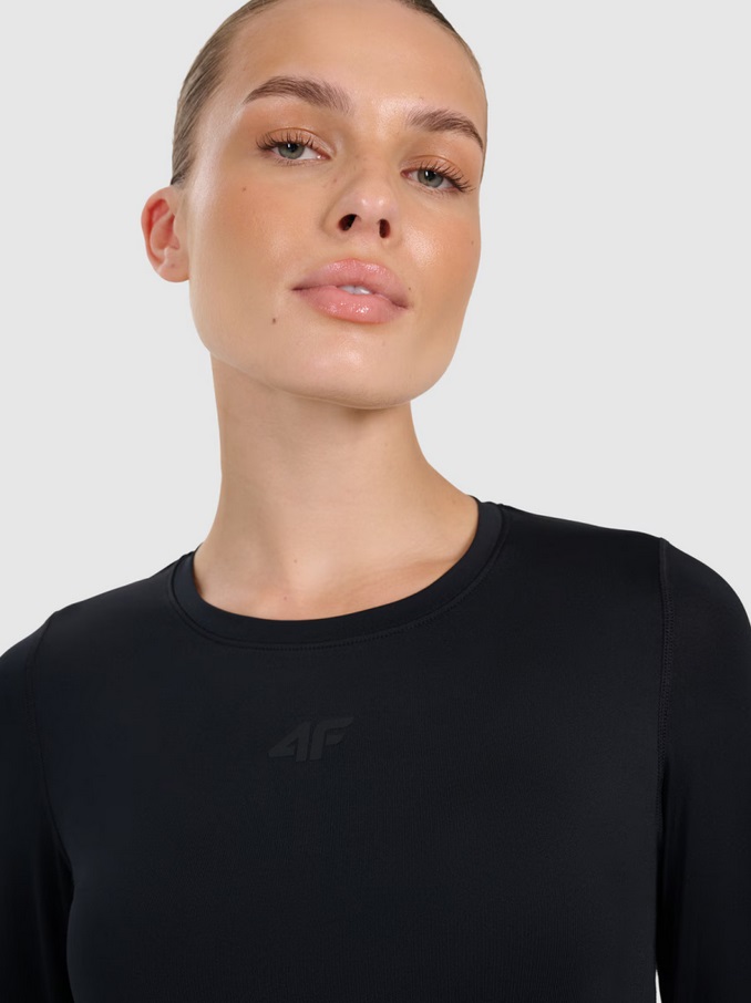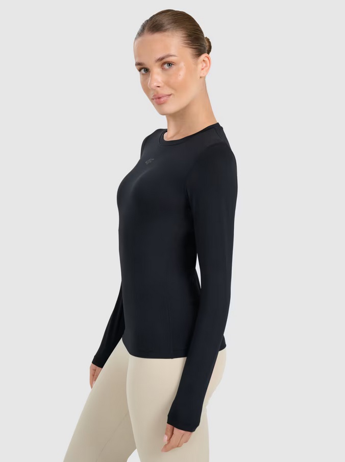 Sieviešu treniņu krekls ar garām piedurknēm — uzticams atbalsts un komforts katrā treniņa posmā. Pateicoties ātri žūstošiem, elastīgiem materiāliem un ērtam piegriezumam, šis tops nodrošina pilnīgu kustību brīvību, ļaujot maksimāli koncentrēties un justies ērti treniņa laikā. Izgatavots no sintētiska materiāla, kas nodrošina izturību un ir viegli kopjams. Pateicoties 10% elastāna pievienošanai, tas stiepjas un ērti pieguļ. Šim ātri žūstošajam topam ar garām piedurknēm ir 4FDry tehnoloģijas šķiedras, kas novada mitrumu prom no ķermeņa.
