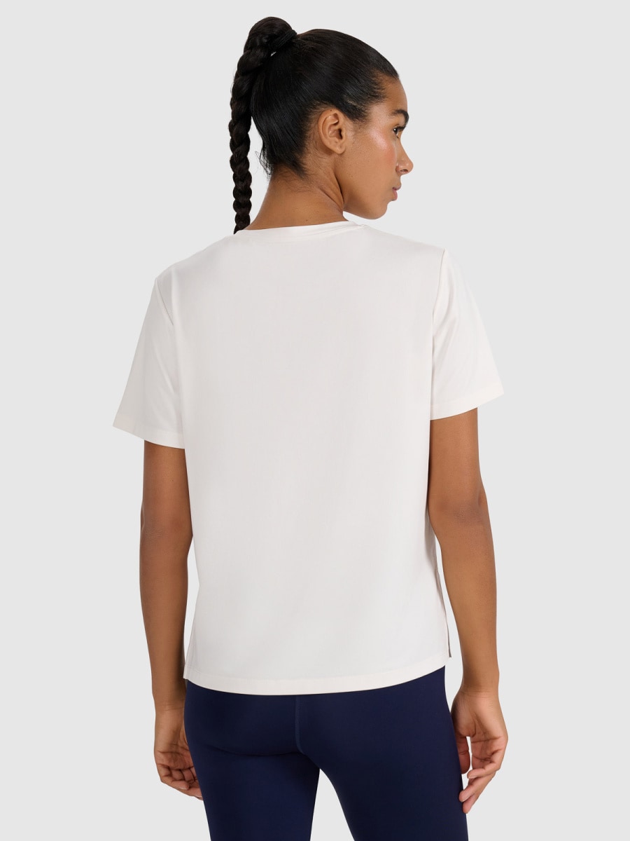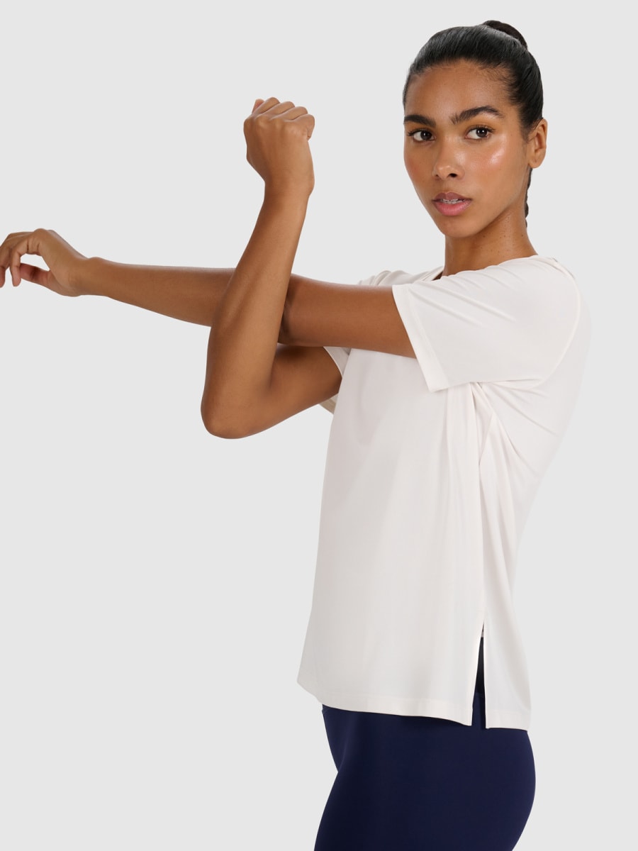 Treniņu līnijas apģērbu galvenais mērķis ir nodrošināt komfortu un atbalstu jebkura veida treniņu laikā ar dažādu sarežģītības pakāpi un intensitāti. Pateicoties ātri žūstošiem, elastīgiem materiāliem un ērtai piegrieznei, T-krekls nodrošina pilnīgu kustību brīvību, ļaujot maksimāli koncentrēties un justies ērti treniņa laikā. Tam ir standarta piegriezums, kas ērti pielāgojas figūrai, un standarta garums, kas sniedzas līdz gurnu līnijai. Īsroku treniņu T-kreklam ir ātri žūstošas šķiedras 4FDry tehnoloģijā, kas atbalsta mitruma aizvadīšanu no ķermeņa.