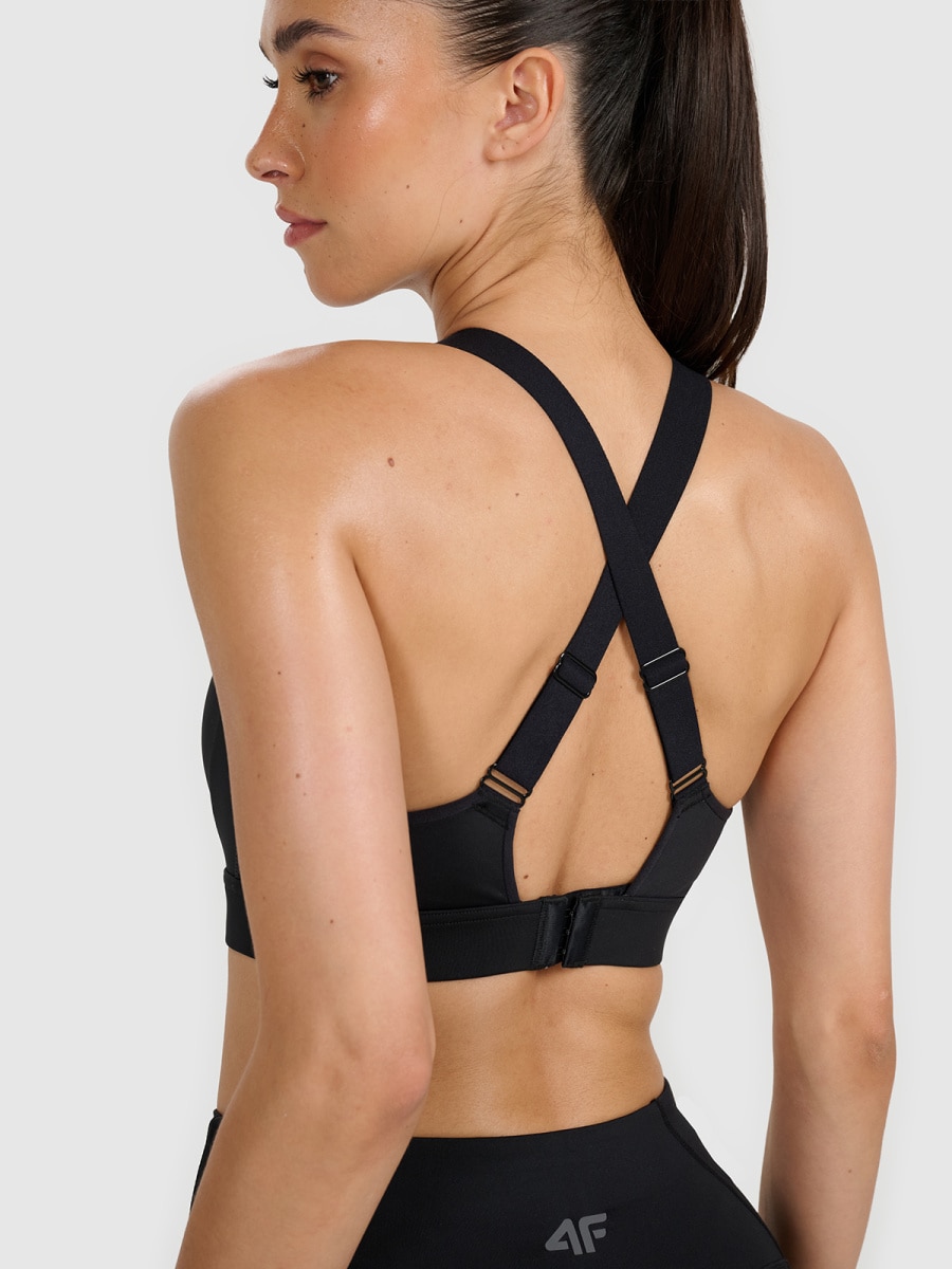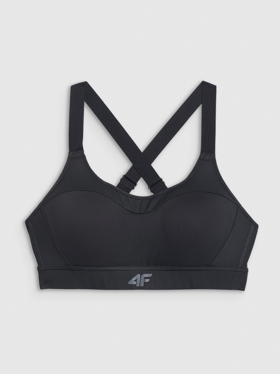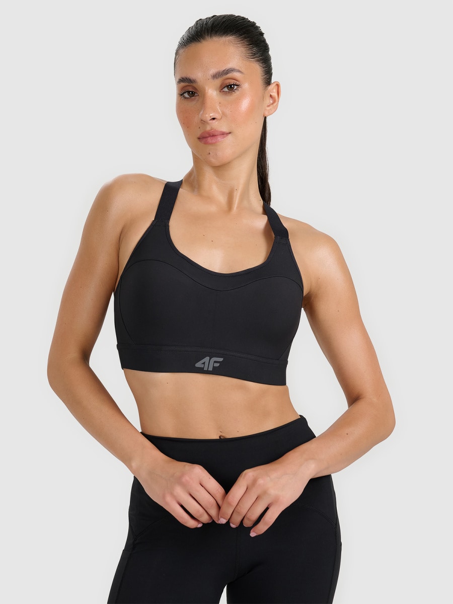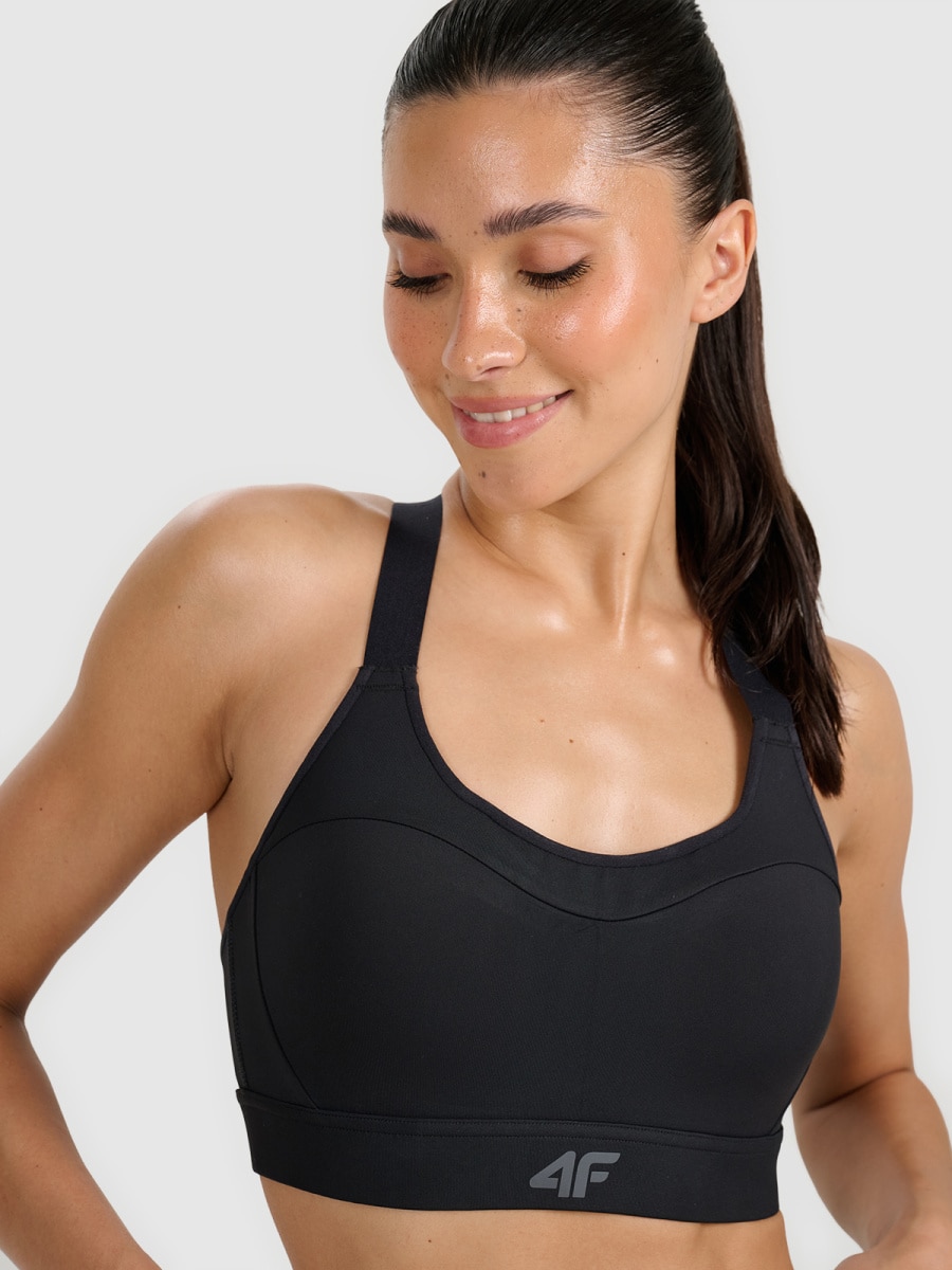 4F SPORT BRA, DEEP BLACK/180 Women’s training bra with medium support – comfort and stabilization, necessary for every stage of training. The main goal of the training line clothing is to provide comfort and support during any type of training with different degrees of progress and intensity. Thanks to quick-drying, elastic materials and a comfortable fit, the bra will provide complete freedom of movement, allowing maximum concentration and ensuring comfort during training. Interlock weave makes the material durable, but at the same time soft, adapts well and absorbs moisture. It is characterized by a smooth structure on both sides. With quick-drying fibers in 4FDry technology, which ensure moisture removal from the body. Partially reinforced molded cups are integrated into the entire bra structure. Provides adjustment, reduces the risk of abrasions and at the same time provides support and stabilization. Poliesters 77%, Elastāns 23%; Odere: Poliesters 83%, Elastāns 17%
