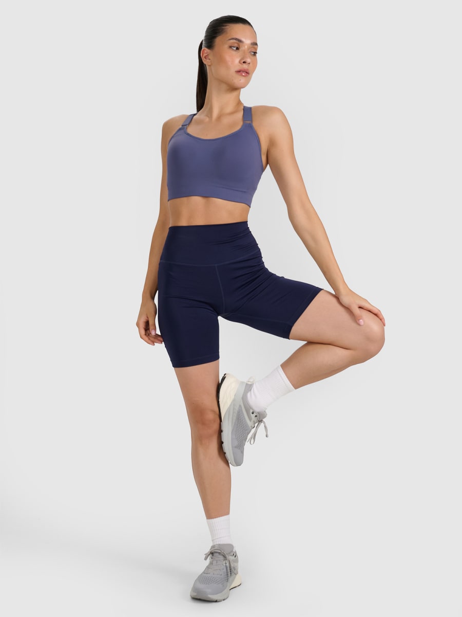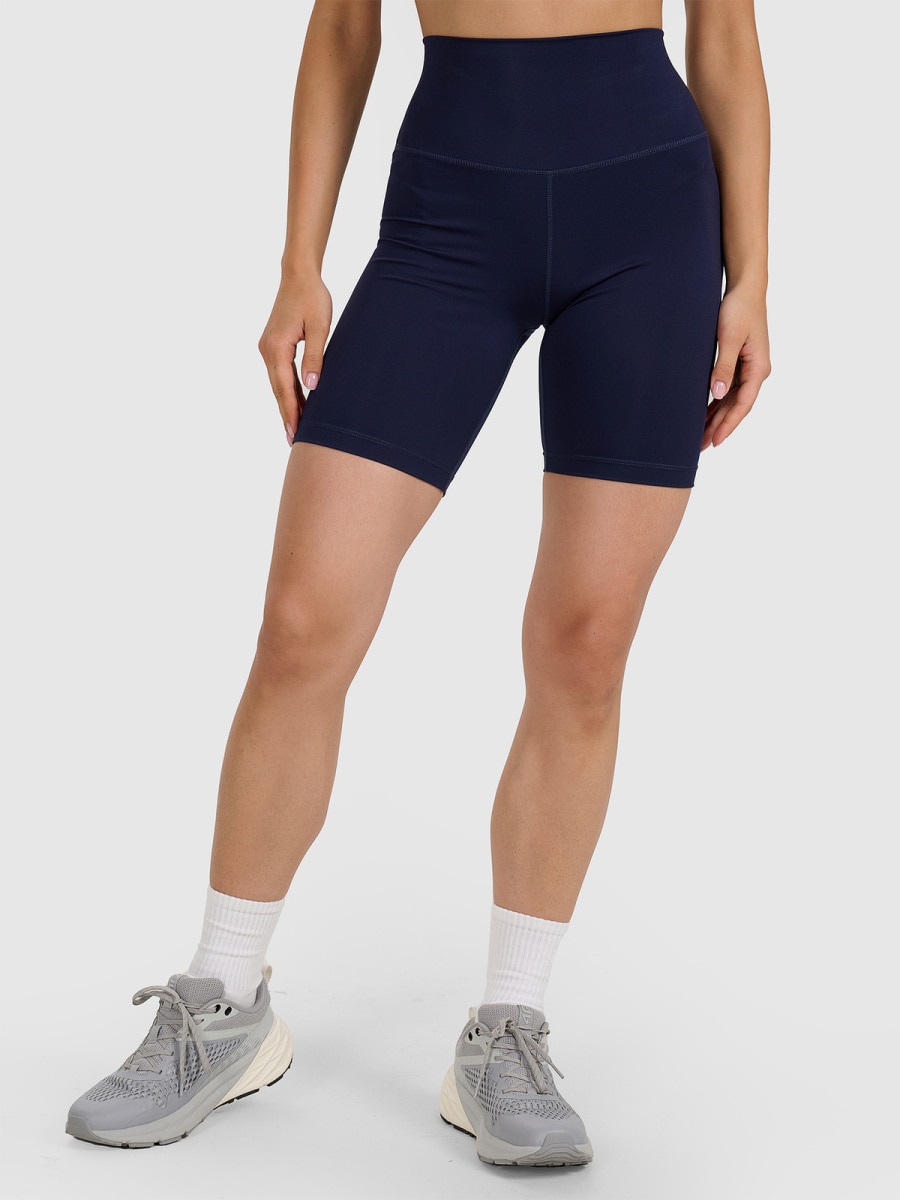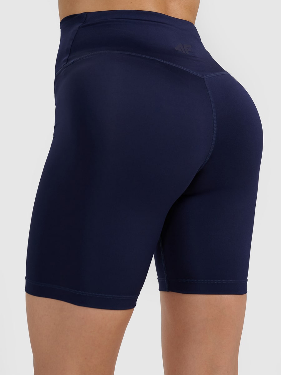 4F SHORT TIGHTS FNK, NAVY The main goal of the training line of clothing is to provide comfort and support during any type of training with varying degrees of complexity and intensity. Thanks to quick-drying, elastic materials and a comfortable cut, the shorts will provide complete freedom of movement, allowing you to concentrate and feel comfortable during training. High waist, which holds in place and provides better coverage, and length to the knees. Women’s training shorts are made of synthetic material, which ensures durability and is easy to care for. Thanks to the addition of elastane (18%), they are elastic and comfortably fit the figure. Quick-drying fibers with 4FDry technology, which supports moisture removal from the body. Poliesters 82%, Elastāns 18%