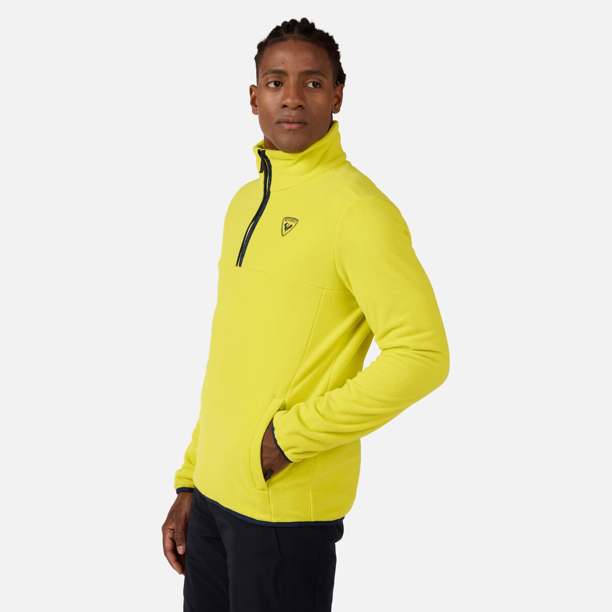 Layer up for extra warmth on cold days. The men’s Rossignol Strawpile Half-Zip Fleece Top is the mid-layer that fits comfortably under your ski jacket on the mountain and is a versatile layer for everyday wear off the mountain. It offers the familiar warmth of fleece and all-around versatility for active wear. Pair it with the Strawpile ski jacket for a complete color-matched look.