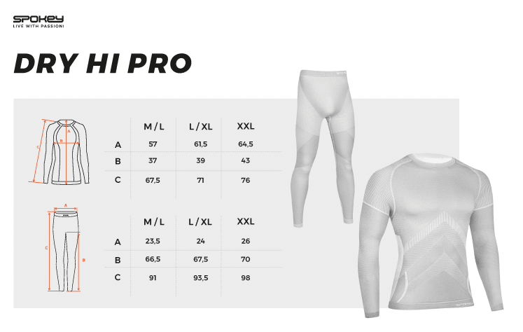 Vīriešu termo bikses no Spokey. Tās saglabā optimālu siltuma daudzumu, novēršot pārkaršanu un atdzišanu fiziskas slodzes laikā. Tās lieliski pieguļ ķermenim, sniedz siltuma un komforta sajūtu, vienlaikus neierobežojot kustības. Ir izgatavotas no augstākās kvalitātes itāļu TASLAN dzijas, kas apvieno kokvilnas priekšrocības ar mikrošķiedras īpašībām un ir apstrādātas ar sertificētu antibakteriālu līdzekli. Spokey DRY HI PRO vīriešu bikses ir īpaši izstrādāta termoaktīvā apakšveļa, kas nodrošina pilnīgu komfortu ziemas sporta veidos un jebkuras fiziskas aktivitātes laikā. Tās kļūst par jūsu otro ādu, jo tās lieliski pieguļ ķermenim, efektīvi novada mitrumu uz āru un lieliski ventilē, kas neļauj ķermenim pārkarst vai atdzist slodzes laikā. Pateicoties tam, tās uztur optimālu ķermeņa temperatūru pat vissmagākajos ziemas apstākļos. DRY HI PRO termoaktīvās bikses nodrošina maksimālu kustību brīvību.