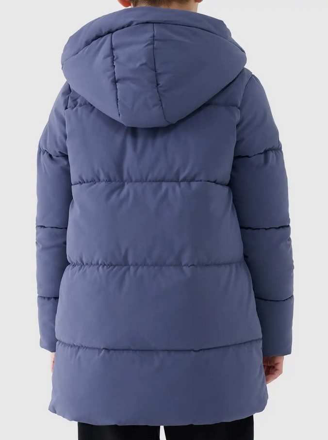 Sintētisko dūnu virsjaka bērniem ar kapuci un ar palielinātu pildījuma apjomu un svaru ir ideāla izvēle aukstām ziemas dienām. Tas garantē ļoti labu aizsardzību pie zemām temperatūrām un tajā pašā laikā pilnīgu komfortu dažādos laikapstākļos. Hidrofobais impregnēšanas slānis pārklāj materiāla ārējo slāni un pasargā to no ūdens uzsūkšanās.