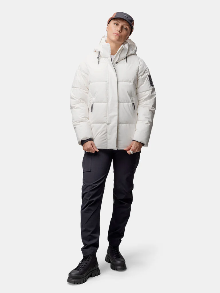 The Brahe Women’s Puffer Jacket is designed for cold city days, long commutes, and crisp walks through the urban winter. Its timeless fit and extended length give coverage and comfort, while subtle feminine shaping adds modern everyday elegance. Dual-layer insulation provides warmth without bulk, and the Bluesign®-approved shell offers protection from wind and light moisture. Whether you’re heading to the office, meeting friends, or walking the dog in freezing temperatures, Brahe keeps you covered in style. Features like a detachable hood, adjustable hem, and ribbed cuffs complete a versatile jacket for all-day winter comfort. Brahe is crafted from recycled polyester and designed as a monomaterial product, making future recycling more efficient without compromising durability. Waterproofness: 5000 mm; Breathability: 5000 g/m2/24h. Technology: Arcty®, bluesign® APPROVED, microtherm® THERMOFILL, Rudolph BIONIC-FINISH_ECO®