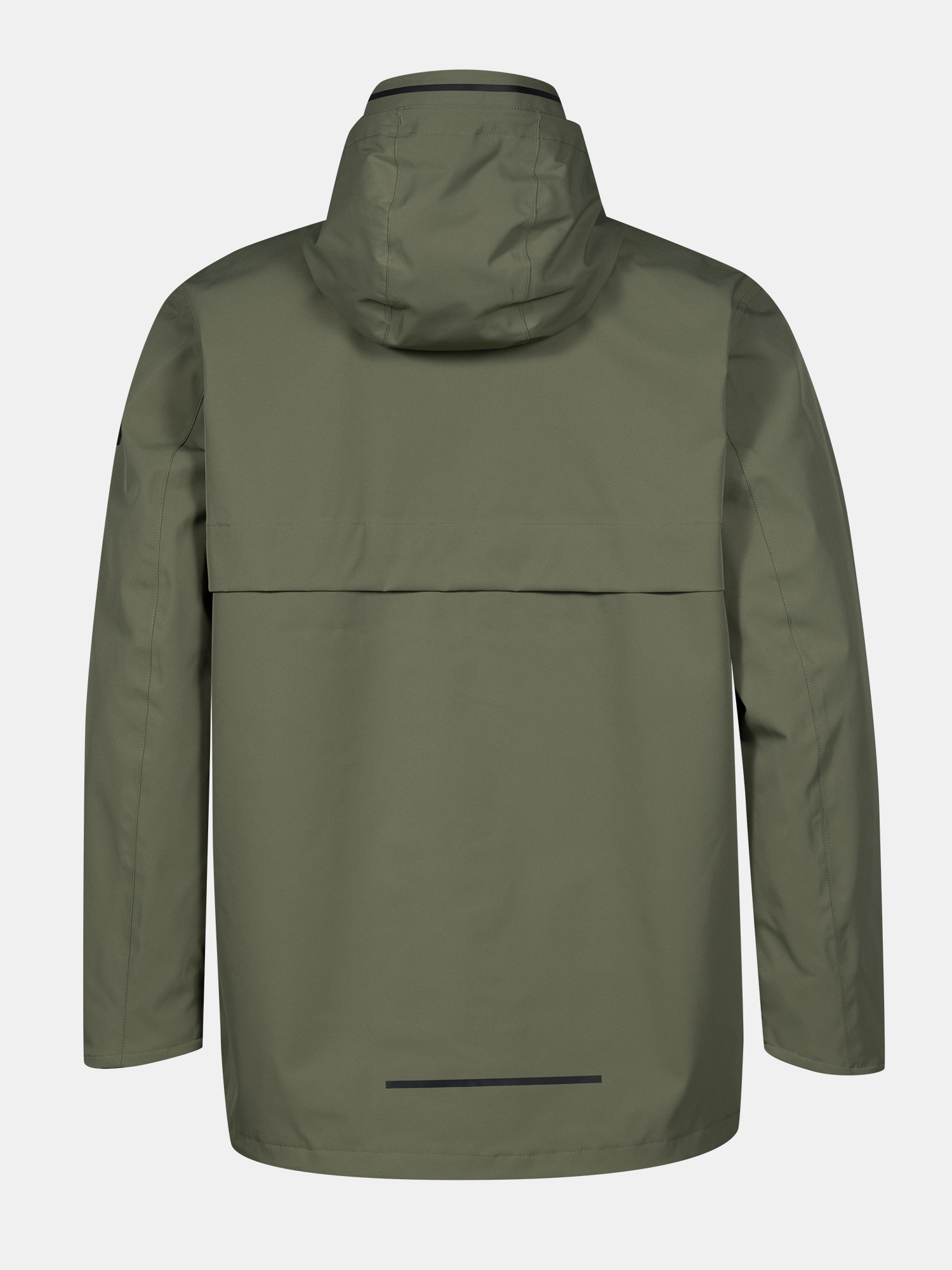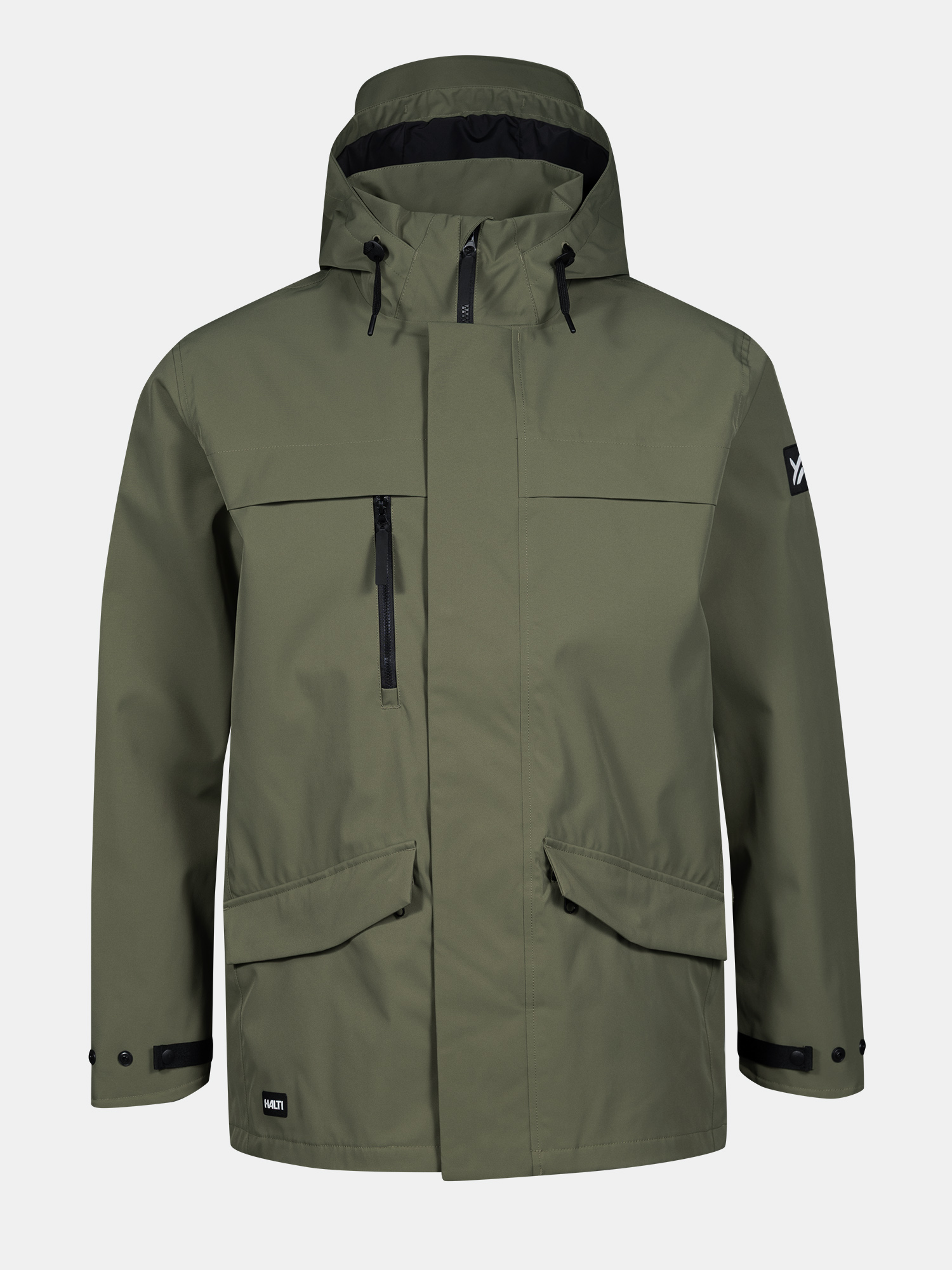 Tokoi is a practical, weatherproof shell for everyday urban life. Waterproofness: 10000 mm; Breathability: 10000 g/m2/24h. No fuss, no overpromising, just dependable protection with the right features, built to last and built to be used. Its relaxed fit makes room for layering without losing mobility, and the clean design hides a full set of technical adjustments you’ll actually use. This is an urban shell that doesn’t pretend: it performs. The jacket is made from a waterproof and windproof DrymaxX® 2-layer fabric that is Bluesign® approved. A light lining keeps you comfortablewhen the temperature drops, and every seam is taped for full protection. The Rudolf Bionic Finish Eco treatment adds reliable water repellency without unnecessary chemicals. Tokoi handles the long days: the stand-up collar shields your face from gusts, the fixed hood adjusts quickly, and the 2-way front zipper gives freedom when biking or moving through busy streets. Mesh ventilation helps regulate heat when layers stack up. Hand pockets zip shut, and a snap-fastened inner pocket keeps essentials safe. Adjustable sleeve ends and a front windplacket block out the elements. Reflective details ensure you stay visible in the darker hours. Tokoi is made of recycled polyester and is one of Halti’s monomaterial pieces. Monomaterial refers to a product composed of a single material or fibre.