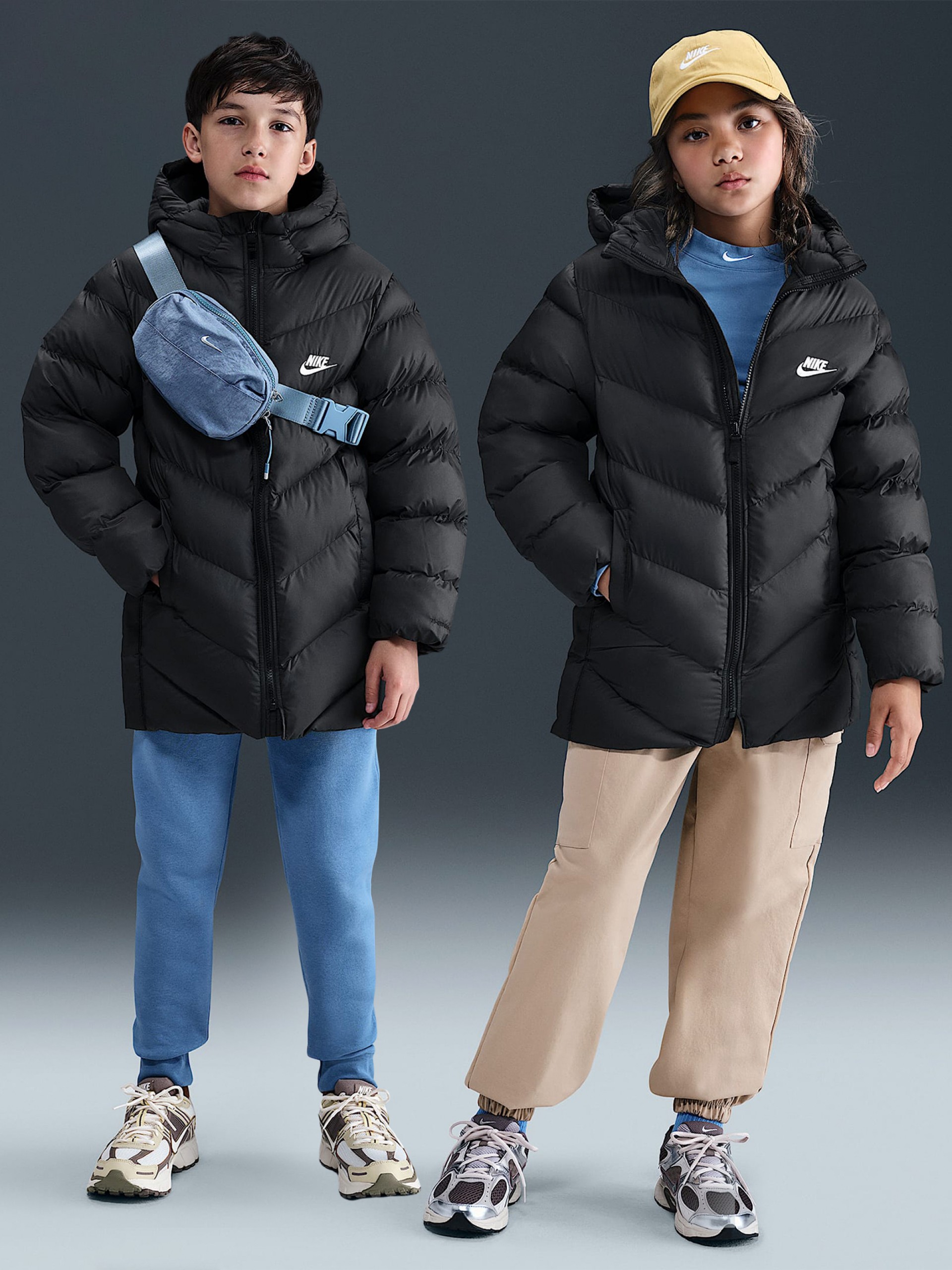 Nike Sportswear All Day Play Therma-FIT Loose Junior Black hooded jacket for children made of partially recycled polyester (as part of the MOVE TO ZERO eco-friendly initiative) with a padded construction and mid-length fit. Features a water-repellent coating, Nike Therma-FIT technology that helps manage your body’s natural heat to keep you warm, side and inside pockets, and an elasticated hem and cuffs (with press studs on the sides for adjustment).