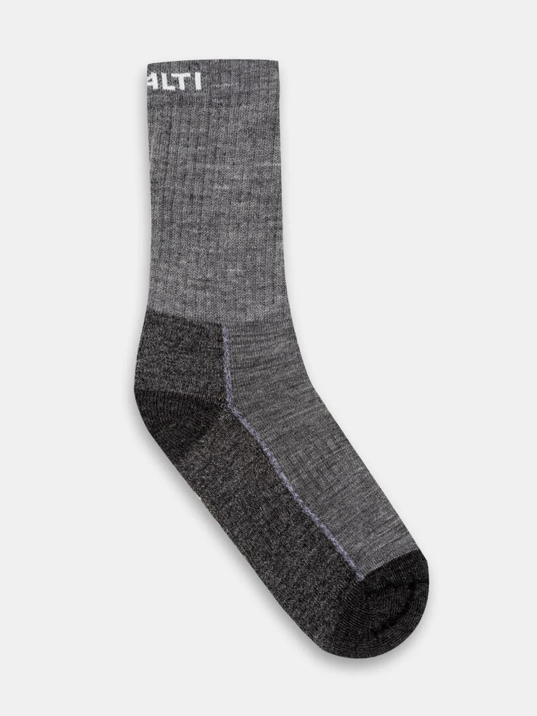 These high-cut, thick Merino wool socks keep your toes warm and feel soft against the skin, even on the coldest days. The plush terry-knit sole traps warm air to create lasting insulation and comfort in every step. Designed for cold-weather adventures, these socks wick moisture away from the skin with a polypropylene inner layer and stay securely in place thanks to a rib-knit shaft. Whether worn alone or layered over thinner socks, they fit perfectly into ski boots, snowboard boots, or winter shoes.