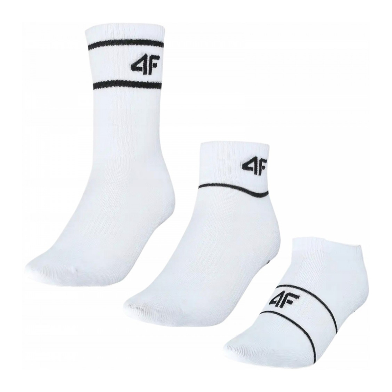 4F ZEĶES, BALTAS/449 4F zeķes (3 pāri) trijos dažādos garumos. Elastīgs pēdas velves atbalsts. 72% kokvilna, 25% poliamīds, 3% elastāns