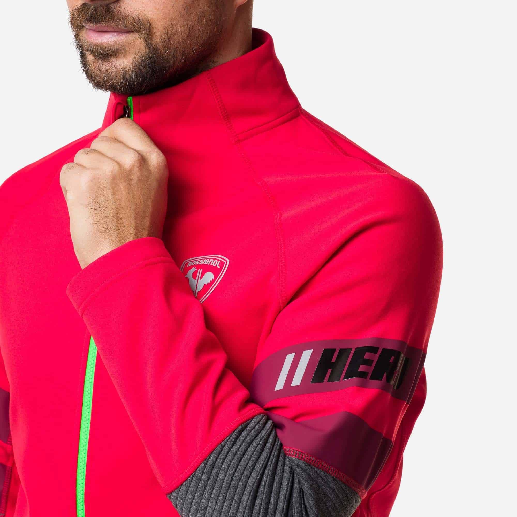 The men’s Rossignol Hero Clim Fleece Jacket layers under a ski shell for extra insulation on cold or stormy days at the mountain. Its soft, midweight fleece build moves with the body for unrestricted mobility and a light, natural feel. It’s brushed on the inside for enhanced softness and small details like a zipper cover at the neck plus zip hand pockets add comfort for wear any time of year. Speed-inspired graphics celebrate the Rossignol performance legacy.