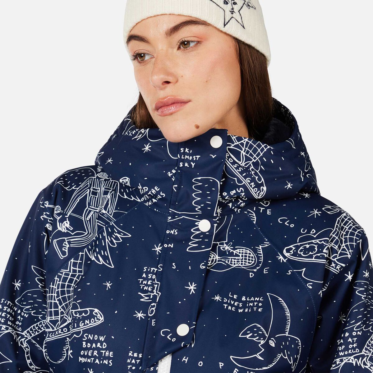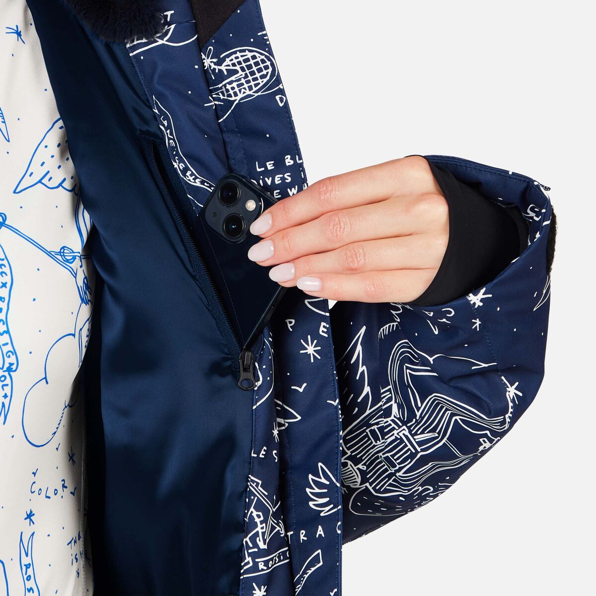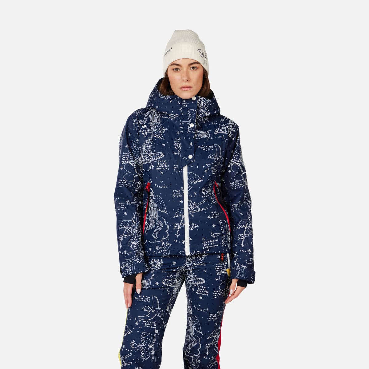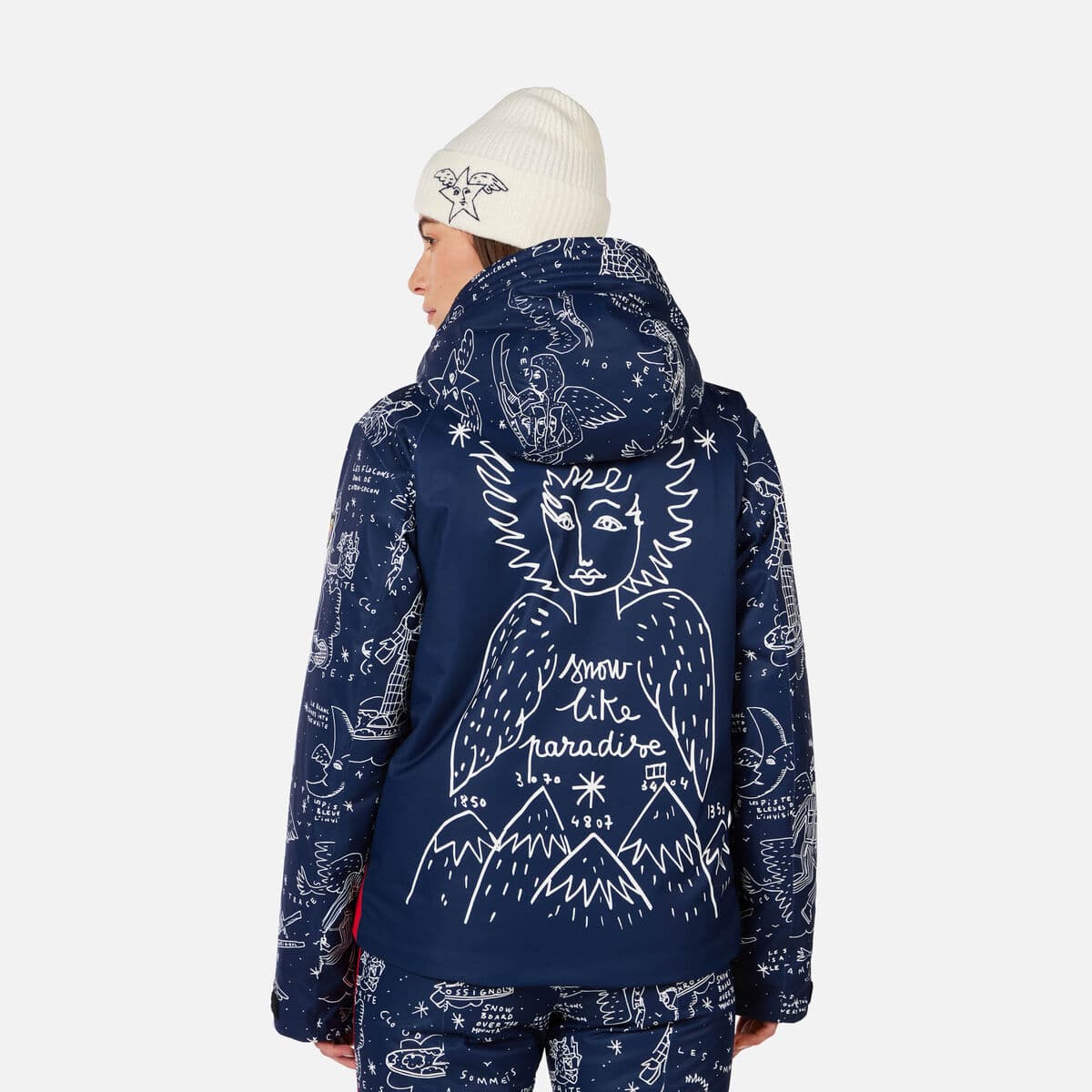 From the lines you carve to the clothes you wear, skiing is about self expression. The women’s Rossignol JCC Sublim Ski Jacket lets your style take flight with iconic angel graphics from the French fashion legend Jean-Charles de Castelbajac. A standout piece that lights up every ski slope, it also keeps you sheltered from snow and cold with fully seam-sealed waterproof storm protection and low-bulk insulation. Built-in stretch lets you move freely, plus you get ski-day features like a pass pocket and helmet-compatible hood.