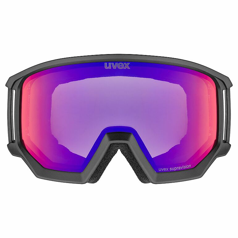nspired by the angular goggle designs in the 1980s, the new athletic FM is the goggle for slopes, park and powder. With know-how from the Alpine Ski World Cup uvex engineers have developed a goggle, whose edgy look causes a stir. Its large field of view makes it stand out, to make a real statement.The uvex athletic FM has been designed with an eye-catching, functional design that can fit perfectly inside a wide range of helmet models, and closes completely. For a wide field of view the goggle extends down over the cheeks and up over the forehead. Thanks to its large volume, and special lateral cutouts in the face foam for eyewear legs, it can be worn comfortably over prescription eyewear.Naturally, the uvex athletic FM protects against harmful UVA, UVB and UVC rays. Proven supravision® coating prevents lens fogging, in any weather. A silicone print on the strap means the goggle always sits securely on the helmet, and won’t slip.