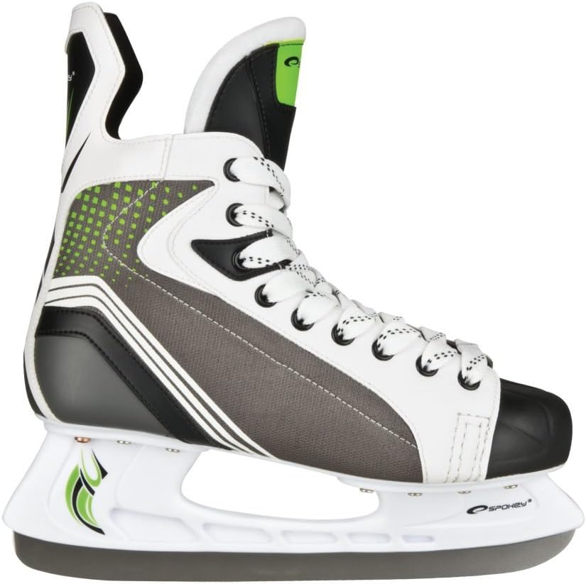 Spokey Avalanche slidas 41 Spokey Avalanche ice hockey skates have pre-sharpened, increased hardness blade made of stainless steel. Reinforced front with PU for better shock absorption. Moisture wicking microfiber lining Rigid, profile-shaped upper ensures support for ankles. Copper, stress rivets extend construction life. Shoelaces increase durability and ensure better and easier boot lacing.