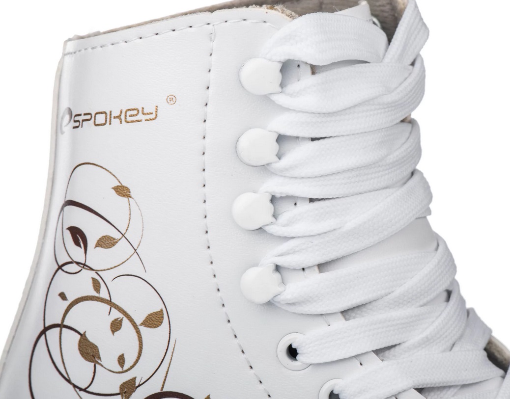 Spokey Axel slidas Effective, richly decorated figure skates for women who value style and comfort. Stainless steel – pre-sharpened stainless steel blade, protected against adverse weather conditions. Synthetic leather – upper made of the latest materials, free from the defects of natural leather. Microfiber lining – absorbs moisture and increases thermal comfort.