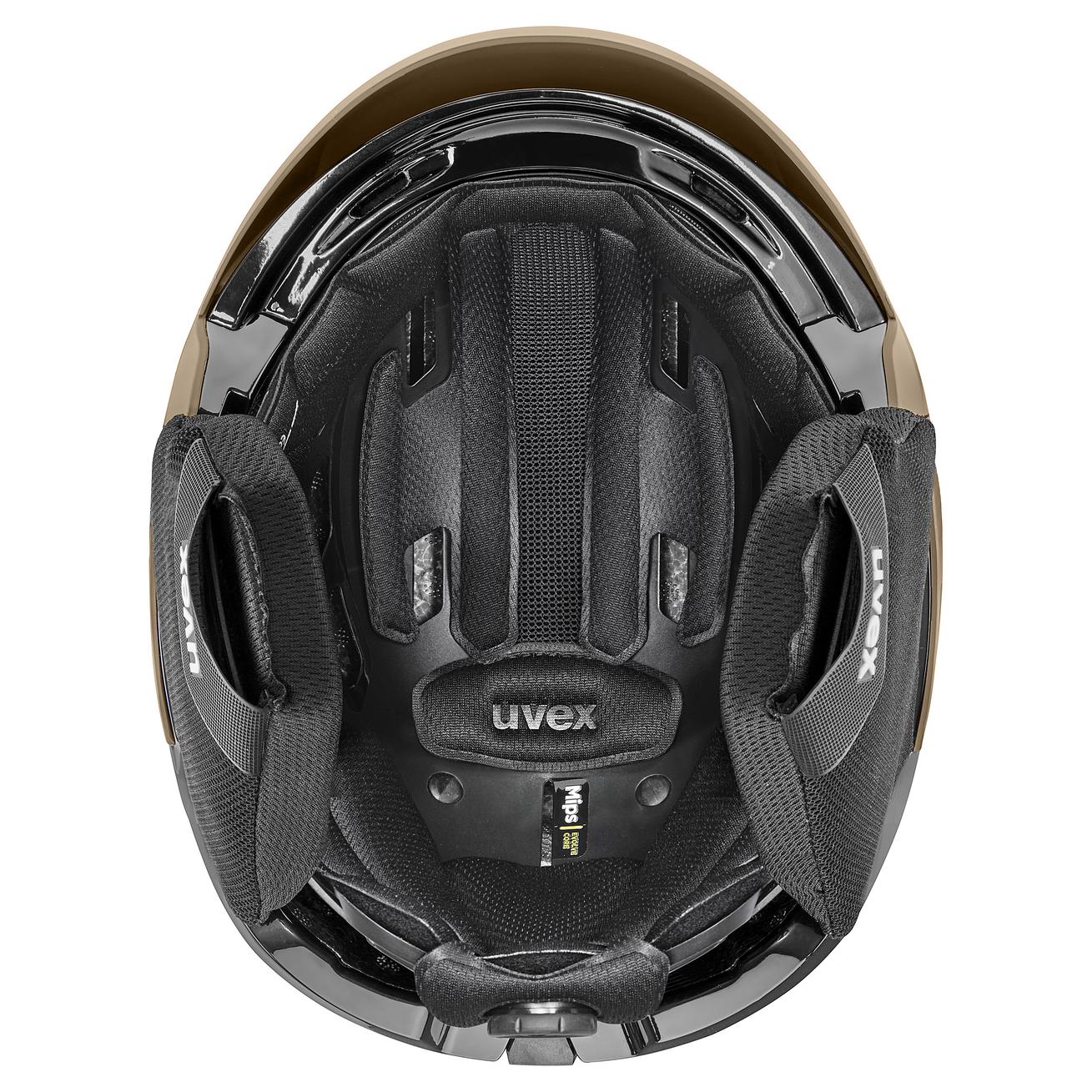 Safety. Control. Style. The brand new uvex levitate MIPS helmet sets new standards in backcountry capabilities. In an ultra-sturdy hybrid construction made from an impact-resistant ABS hardshell and shock-absorbing polycarbonate inmold layer with an EPS inner shell. The built-in MIPS system absorbs any rotational forces during a fall, offering improved protection both off-piste and on-piste. The active ventilation system with adjustable vents at the back and two-part removable COOLMAX® EcoMade lining generate optimum temperature control, no matter what the weather. A unique adjustable shield creates a seamless connection for goggles. And the uvex IAS Fit System at the back of the head ensures an individual fit every time. A Fidlock® magnetic chin strap buckle is operated with just one hand. The ear pads, which are compatible with most audio systems, also feature Hear Through technology that delivers external sound quality surprisingly close to having no helmet on. The result is clean looks, clear sound, and focused performance.