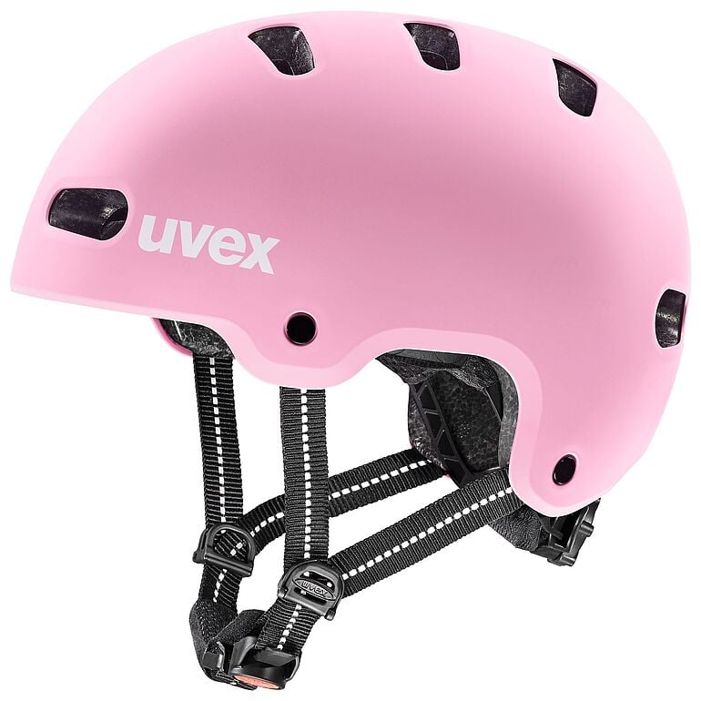 Hop on your bike. Go on an adventure. Have fun. The uvex kid 4 combines safety and protection for kids cruising the neighbourhood, mastering the route to school or practising their first stunts. Composed of a tough ABS outer shell and EPS inner shell, this helmet offers optimum impact resistance and effective shock absorption. Further highlights: The patent pending uvex IAS system with width adjustment limiter and height-adjustable 360° cradle ensures the helmet fits securely without any pressure points. The comfortable padded lining that extends to the uvex monomatic buckle ensures no pinch points. While ten air vents ensure fresh airflow to keep their little heads cool. Further highlights: Reflective straps for improved visibility on the roads. Clever detail: In the vents at the back, there’s the option of inserting a light in the left one, and a Hiplok Z LOK reusable security tie in the right one. uvex kid 4 – for little urban explorers with big plans.