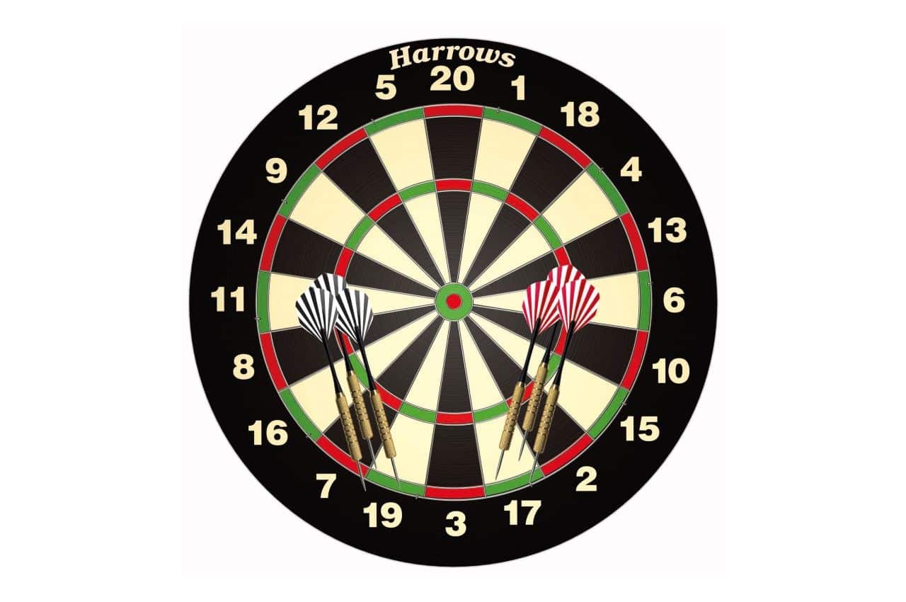 Divpusējs mērķis — divkāršojiet prieku ar tradicionālu mērķi vienā pusē un dažādām spēlēm otrā pusē, kas ir ideāli piemērots visai ģimenei. Vairāk nekā 10 spēles: Mērķim ir vairāk nekā 10 dažādas spēles, tostarp standarta 301 un 501, Round The Clock, Black Jack, 3 In A Bed un citas. Komplektā ir 6 gab. x 18 g svara šautriņas ar metāla uzgaļiem. Drošs un viegli lietojams: Vienkārša montāža un bērniem draudzīgas šautriņas nodrošina drošu spēlēšanu.