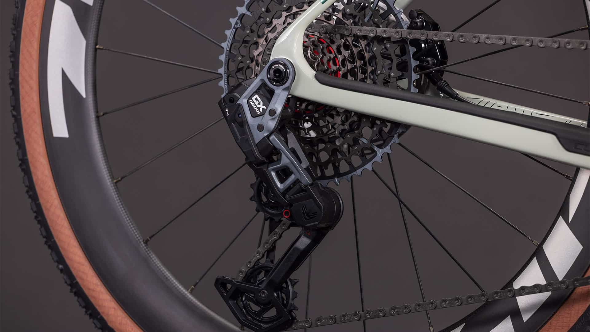 There’s exceptional CUBE design detail in the Nuroad C:62 SLX’s C:62® carbon frame and fork, but you’ve probably already noticed the Zipp 303 XPLR S wheels… so let’s talk about those. Gravel-specific and with a deep rim designed to provide a measurable aero advantage at typical race speeds, we shod them with Schwalbe’s fast-rolling 45mm G-One RX Pro tyres and added Sram’s Force AXS hydraulic disc brakes. Rugged, reliable shifting is served up by Sram’s GX Eagle 1×12 Transmission, and there’s a Sram Force crankset with built-in power meter so that you can keep an eye on your performance. Let’s ride…